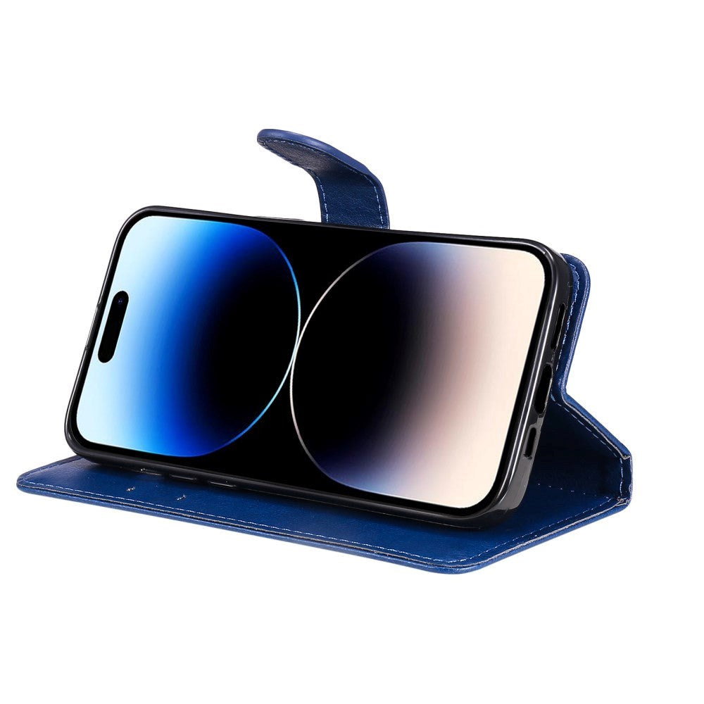 iPhone 15 Pro Leather Flip Case with Wallet and Strap and Wallet - Blue