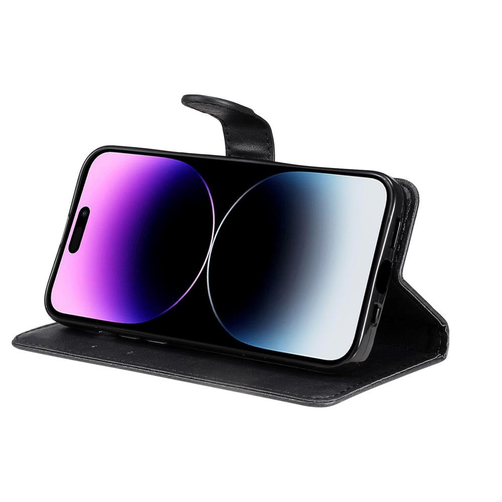 iPhone 15 Pro Max Leather Flip Case with Wallet and Strap - Black