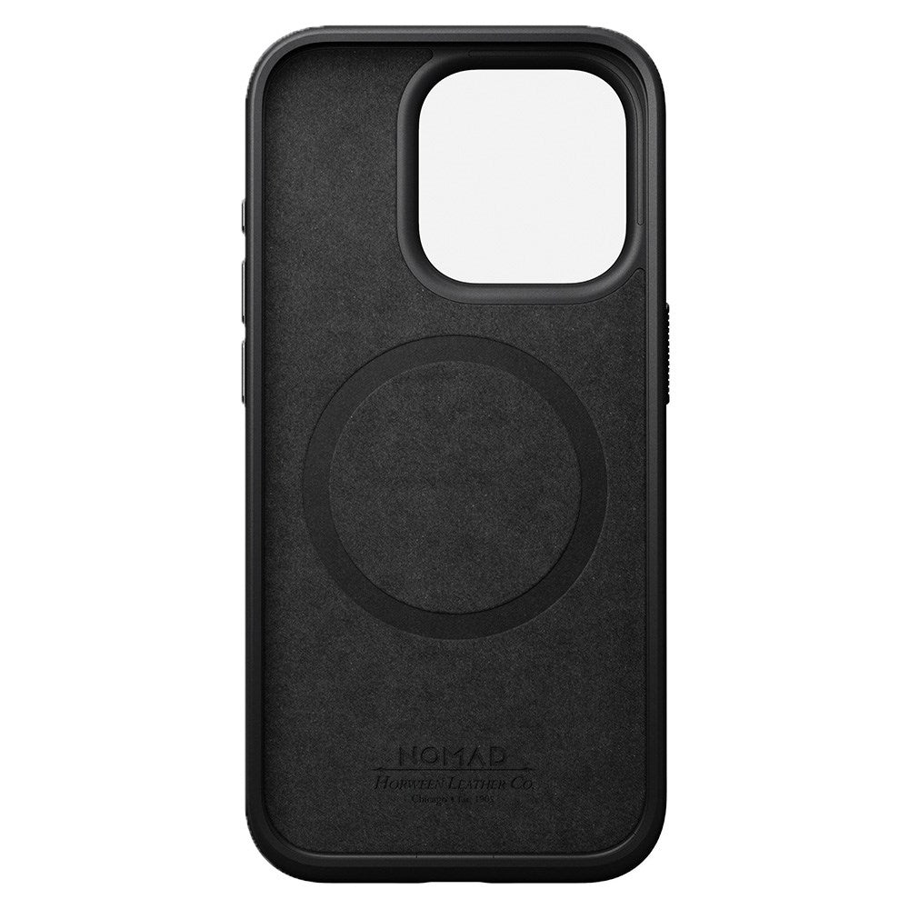 This Nomad case for iPhone 15 Pro is created with a solid plastic frame for a secure fit. On the outside, the case is adorned with beautiful Horween leather, which adds elegance and style.