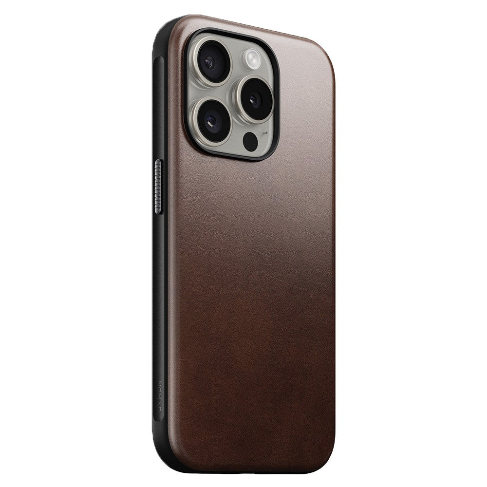 A nice Nomad iPhone 15 Pro case in genuine leather. The case gives your phone a new and classic look, while also providing good protection. Genuine leather has a long life and develops a patina over time, making it personal and unique.