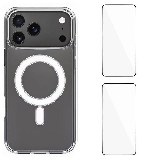 This set includes 1 x hybrid case with MagSafe for iPhone 17 Pro Max and 2 x tempered glass screen protectors.