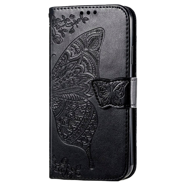 Motorola Moto E7 Power / E7i Power Leather Wallet Case - Butterfly - Black