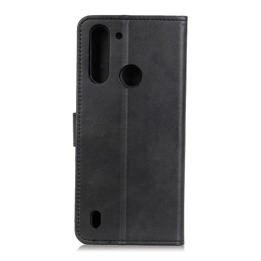 Motorola Moto G8 Power Lite Litchi Leather Wallet Case - Black