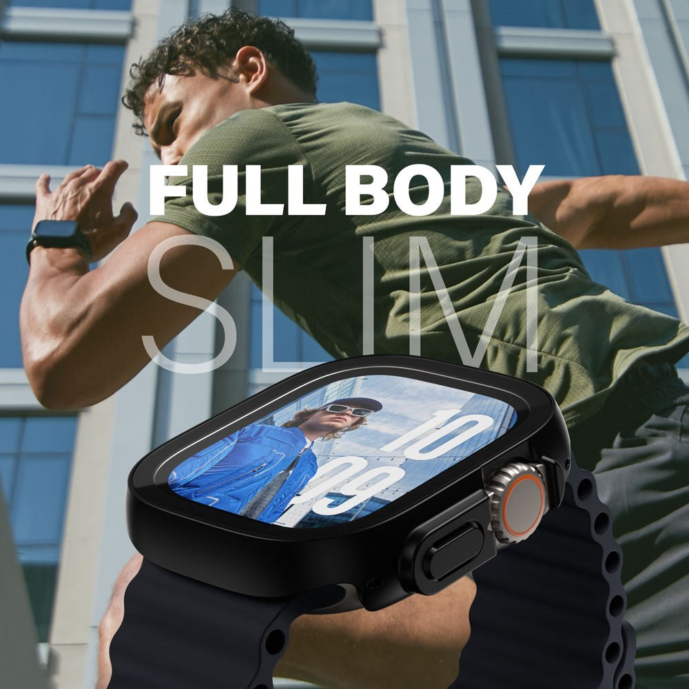 The Apple Watch Ultra 3/2/1 (49mm) case is designed to withstand shocks and drops, and the built-in screen protector absorbs the shocks, increasing the chance of your watch screen remaining intact. The slim edge means that the case is almost not visible, while you still have full access to all functions and buttons on your smart watch.