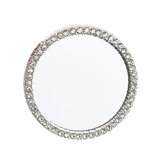 Round Mirror Decoration with Rhinestones for Phone - Silver