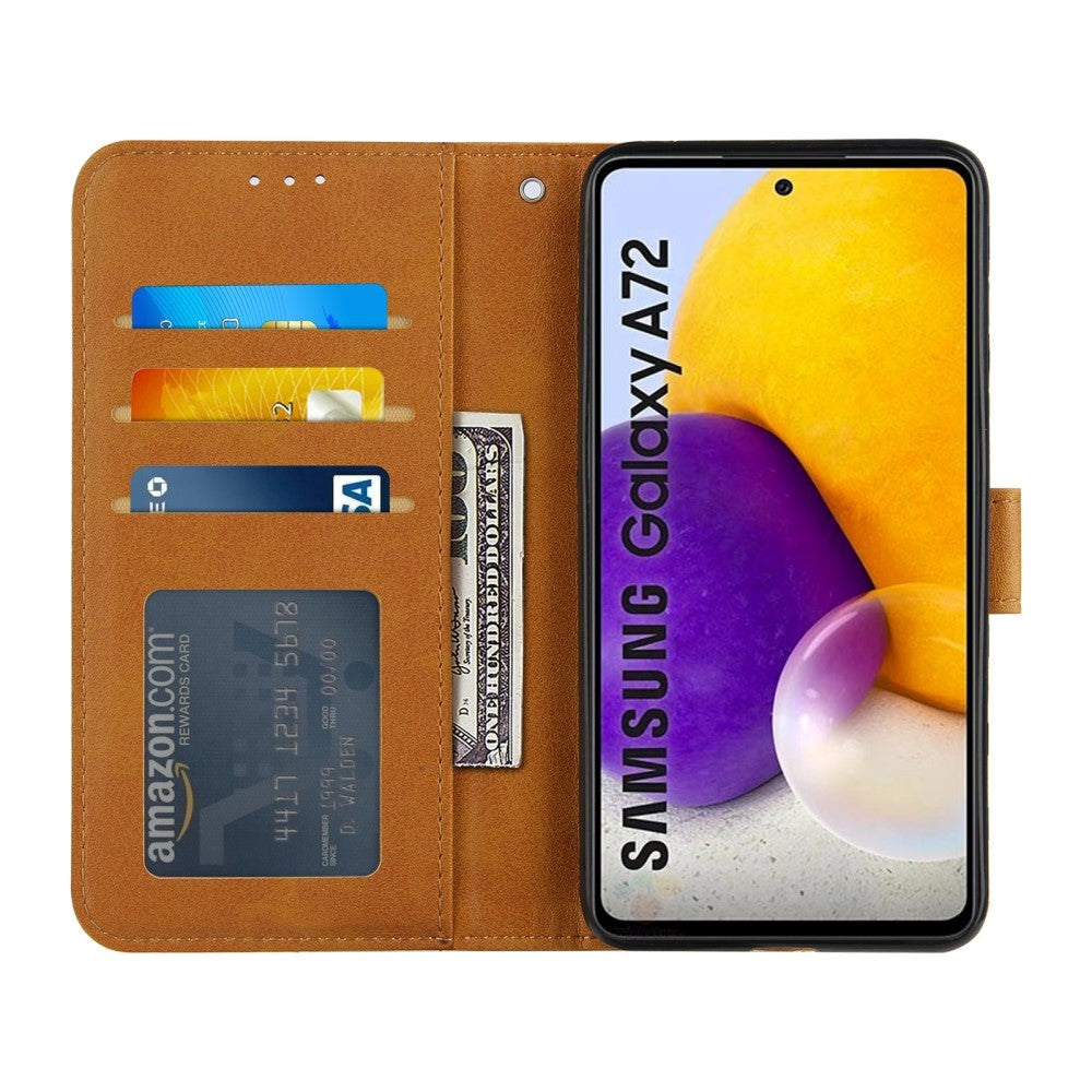 Samsung Galaxy A72 (4G / 5G) Leather Flip Case w. Stand & Card Holder - Light Brown