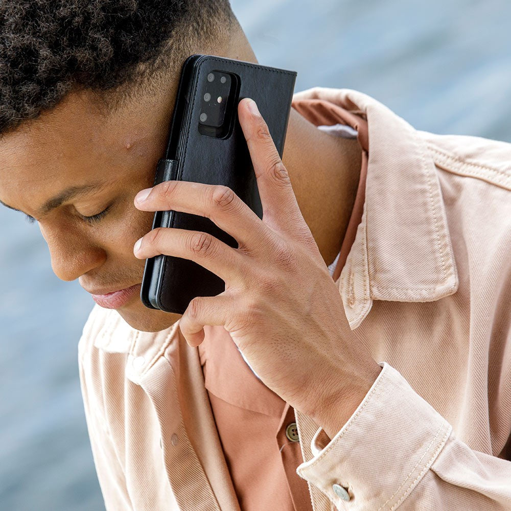 Exclusive flip and back case for Samsung Galaxy S23+, from Danish dbramante1928, in genuine leather and highest quality. Lynge is a 2-in-1 case, which means that it is both a flip case and a back case, both of which provide excellent protection, while giving the phone an elegant appearance. The flip casecloses via a small leather flap, with a built-in magnet, which clicks together when the case is folded. The inside is covered with the same high-quality leather as the outside, so nothing has been spared here!