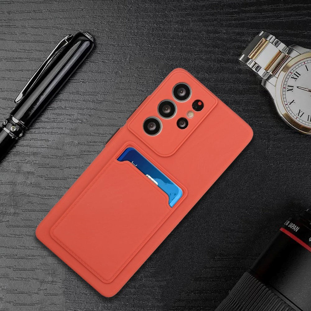 Samsung Galaxy S23 Ultra Flexible Plastic Case with Card Holder - Rust Red