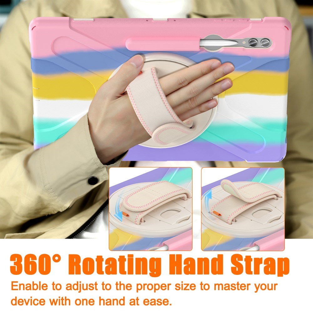 Samsung Galaxy Tab S9 Ultra / S8 Ultra Drop Proof Case w. Hand Holder, Kickstand & Pencil Holder - Multi