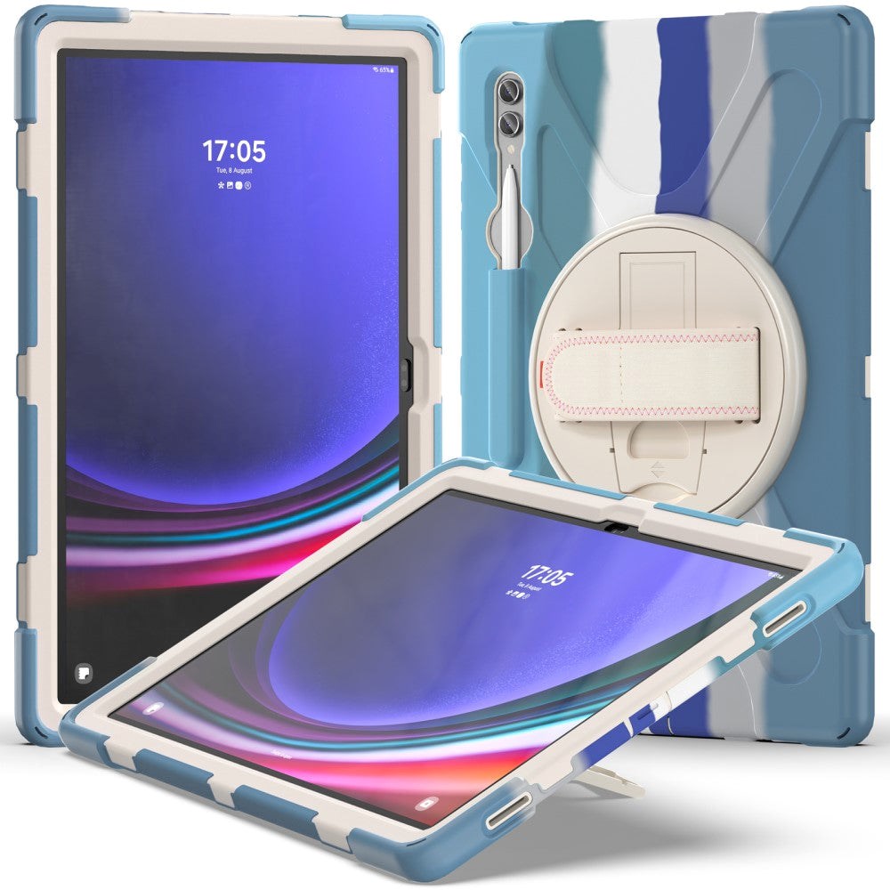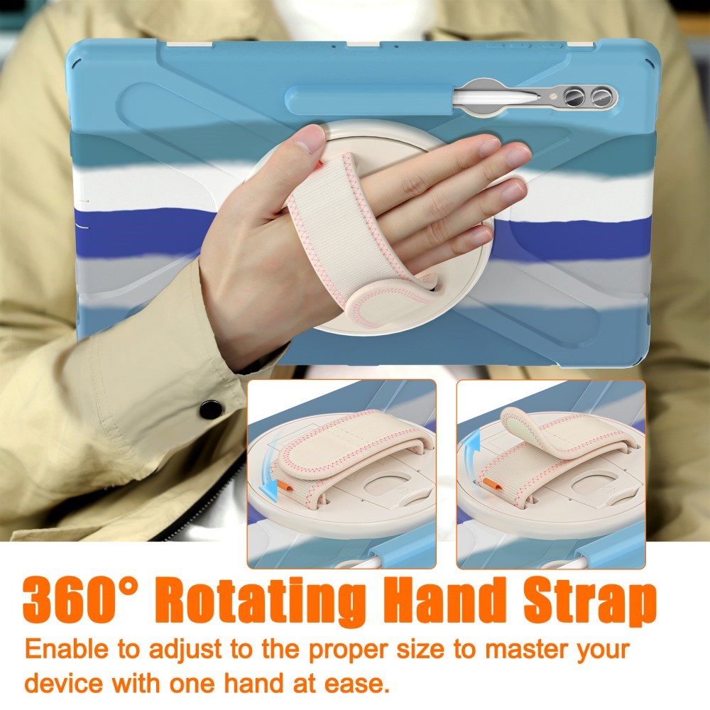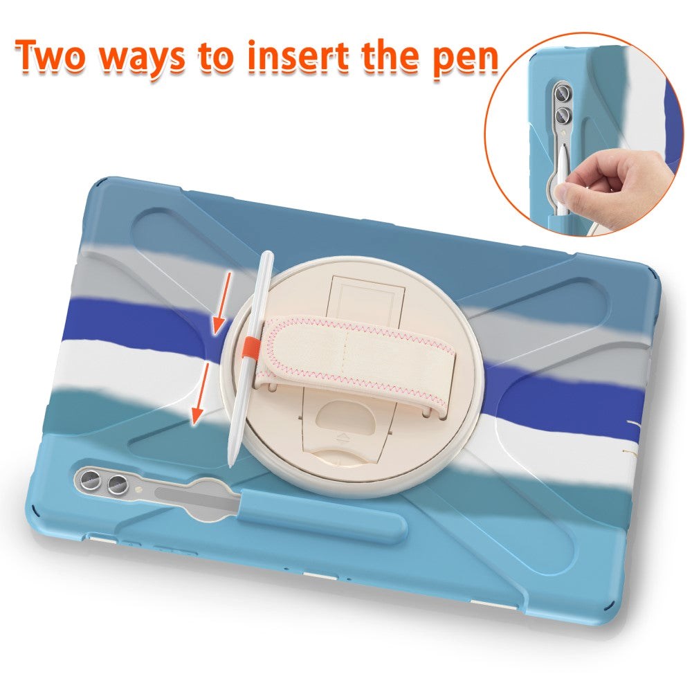 Samsung Galaxy Tab S9 Ultra / S8 Ultra Drop Proof Case w. Hand Holder, Kickstand & Pencil Holder - Multi / Blue