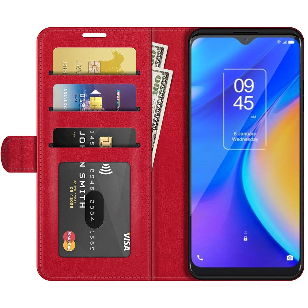TCL 20 SE Glossy Leather Wallet Case - Red