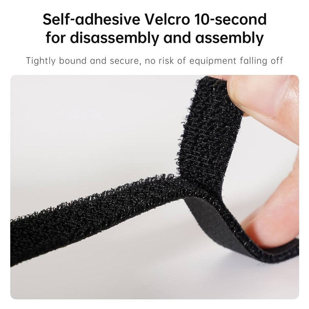 The mounting bracket attaches to the chin of the helmet and is secured through the helmet using Velcro straps. The back of the bracket, which faces the helmet, is designed with silicone grips to prevent it from slipping or moving while riding.