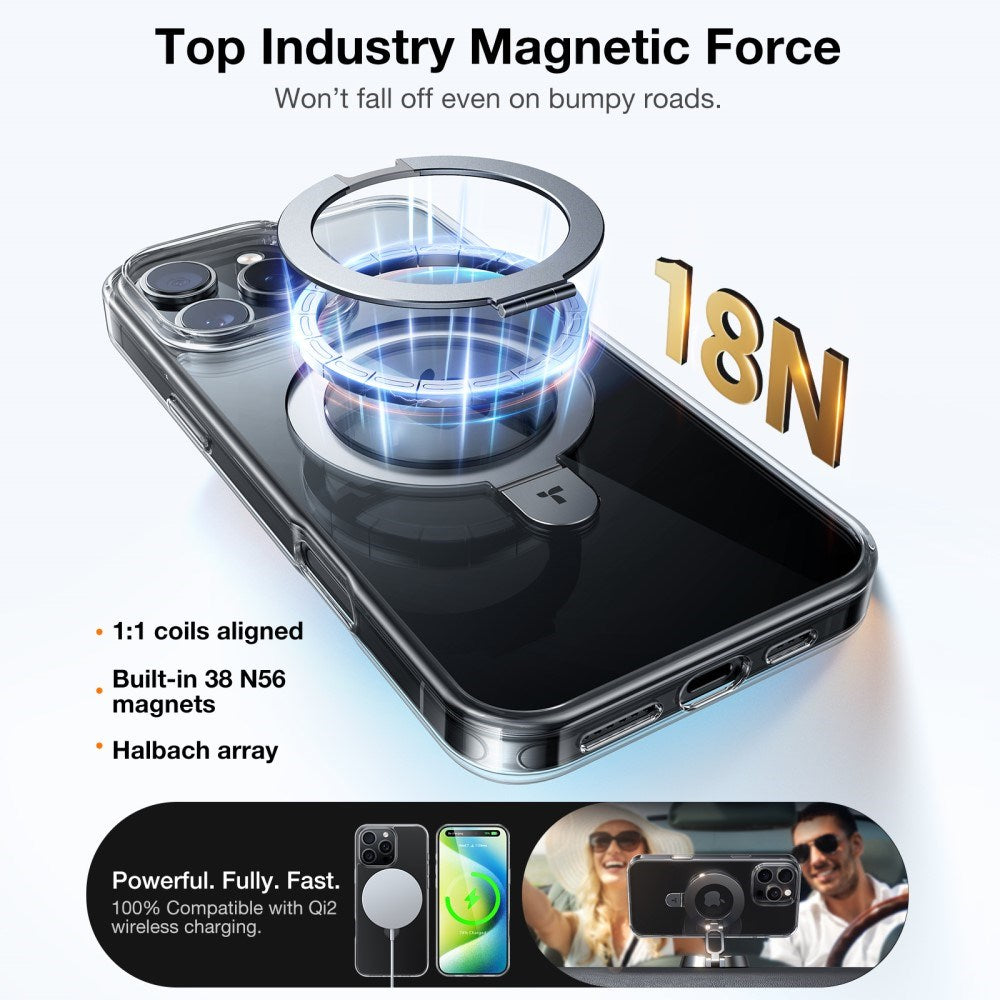 This case is compatible with MagSafe, making it easy to use with MagSafe devices such as wireless chargers, card holders, and car mounts. An internal circular magnet automatically ensures perfect alignment, so you don’t need to remove the case for wireless charging. It also makes it simple to use MagSafe card holders to store credit and fitness cards, as they are magnetically aligned with the phone.
