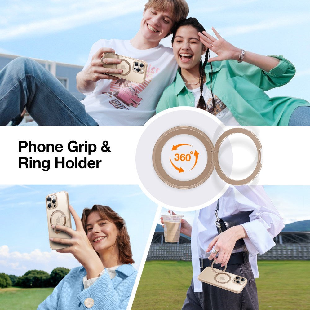 iPhone 16 Pro Max Flexible Plastic Case with Ring Kickstand - MagSafe Compatible - Gold / Transparent