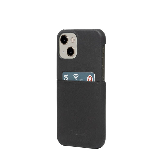 iPhone 13 Mini Genuine Leather Case with Card Pocket - Black