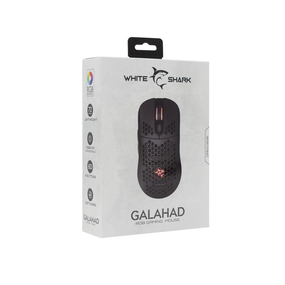 The White Shark GALAHAD is a gaming mouse developed for gamers who demand precision and fast responsiveness. With its lightweight construction of only 72 grams, it is designed to minimize fatigue and maximize speed during intense and prolonged gaming sessions.